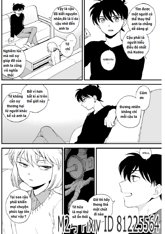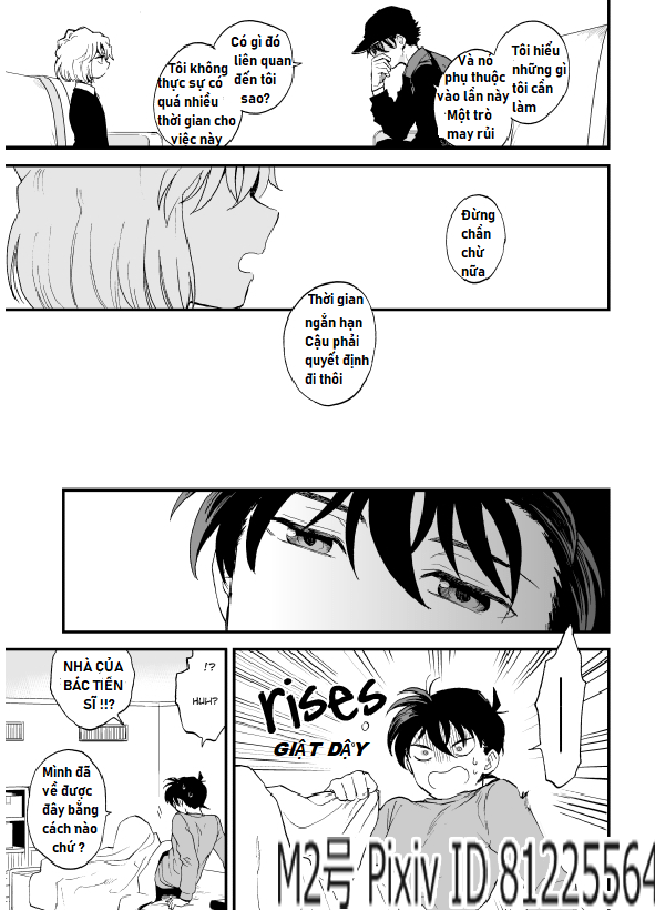 -Mình không dùng các app chuyên nghiệp cho việc edit truyện tranh, vì vậy có một số lỗi hiển thị hay cân chỉnh trong hình. hoặc một số chữ mình không xóa mà dịch đè lê, mình đành phải để như vậy vì không còn cách nào khác, mặc dù nó hơi lệch bố cục nhưng mình đã cố gắng để nó không mang lại cảm giác kì cục nhất có thể vì đây không phải là thứ mình theo đuổi nên đương nhiên nó không thể chỉnh chu một cách quá chuyên nghiệp được, mình mong các bạn thứ lỗi và thông cảm cho một số lỗi nhỏ xuất hiện trong bản dịch nhé.