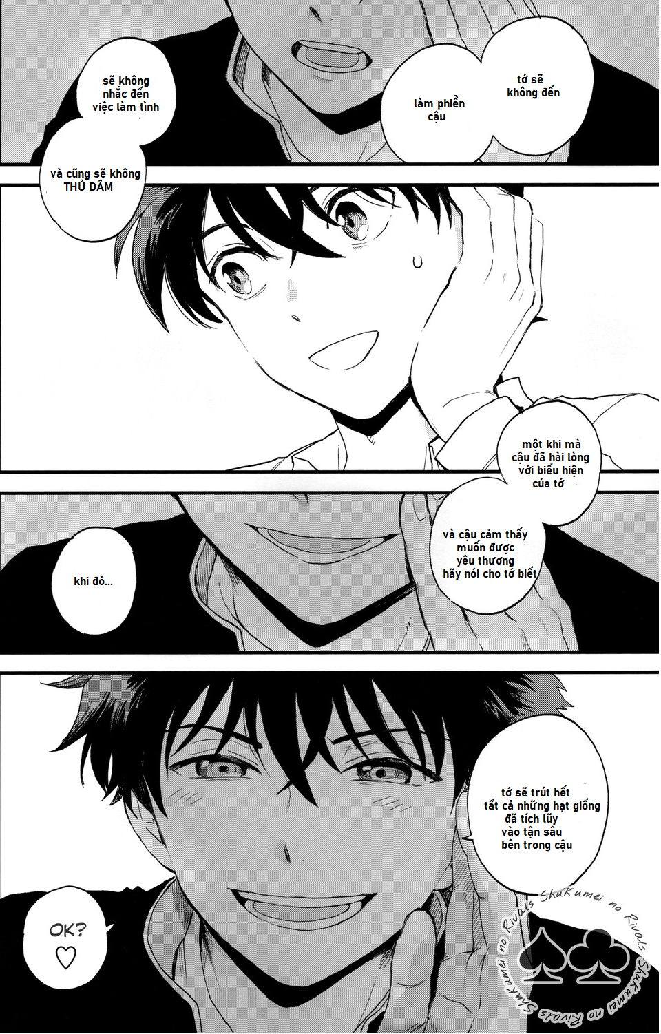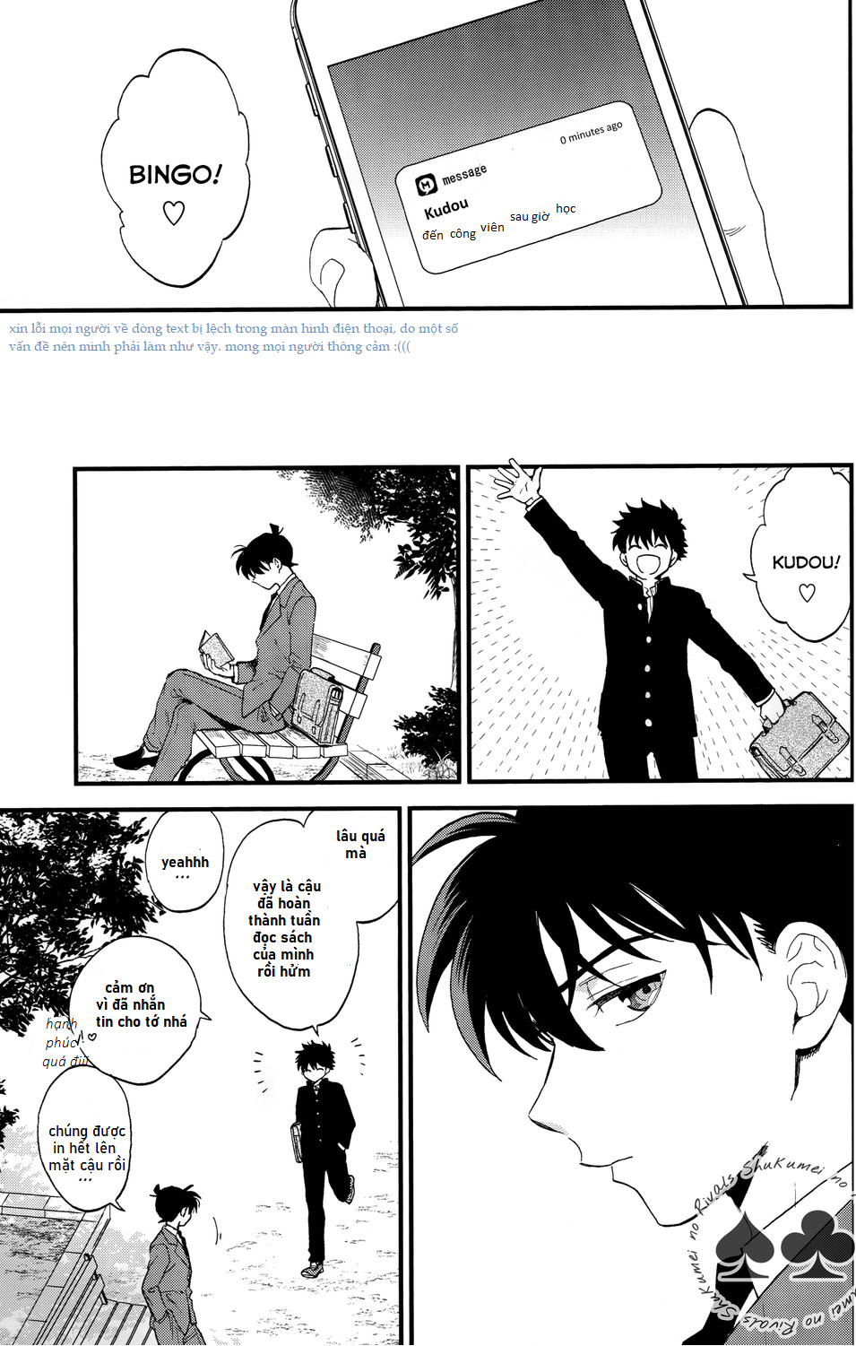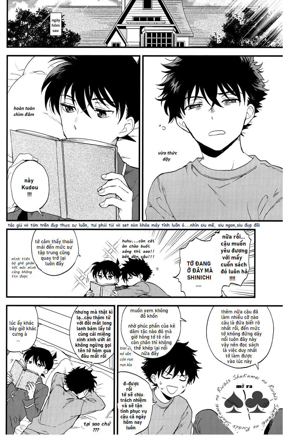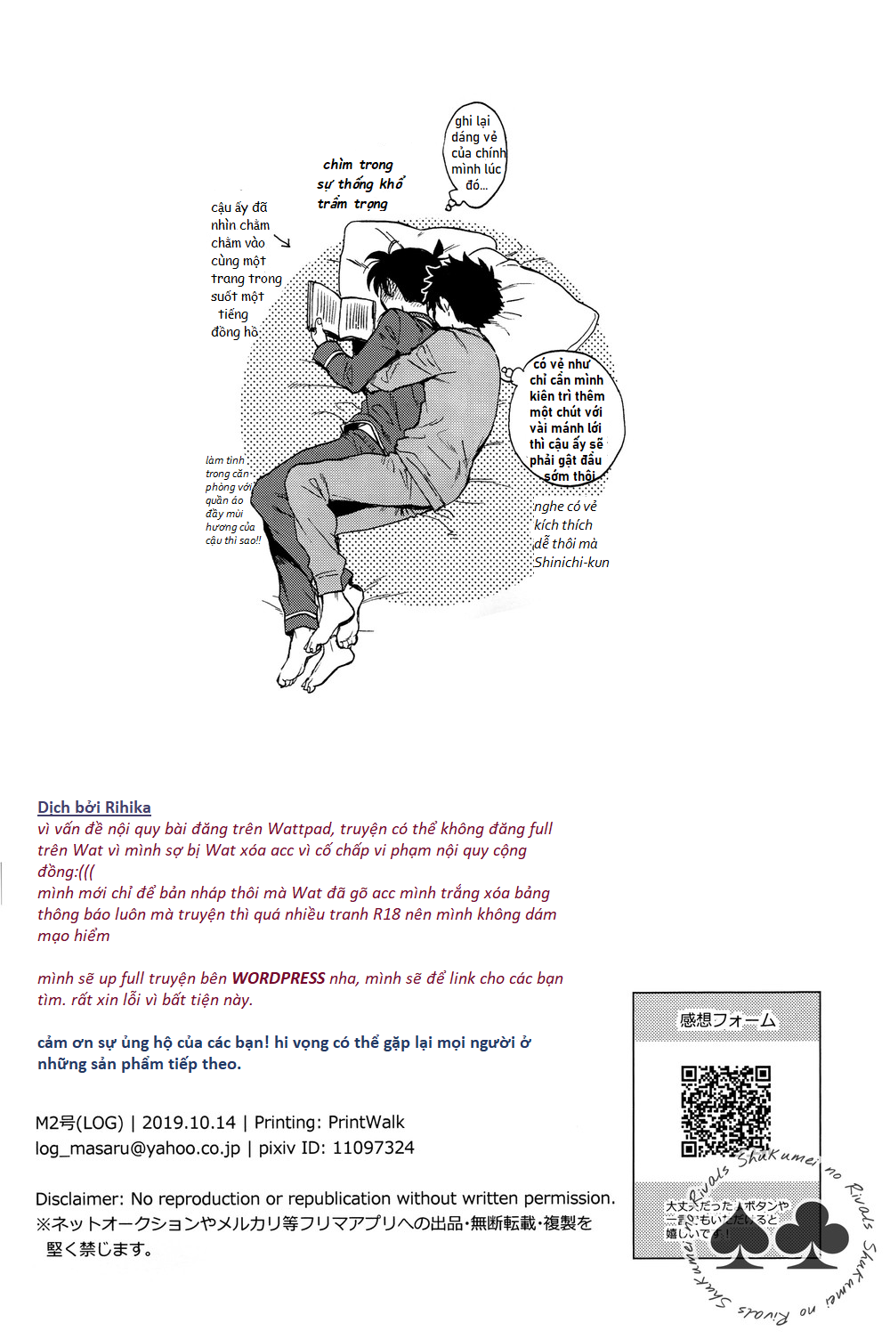 – Đây là tác phẩm thứ 2 về KaiShin mà còn là doujinshi, mình sẽ làm hết sức ở trong khả năng của bản thân, nó còn khá nhiều hạn chế về từ ngữ và bố cục tranh dịch vì vậy hãy trải nghiệm nó một cách thoải mái nhất nhé.
